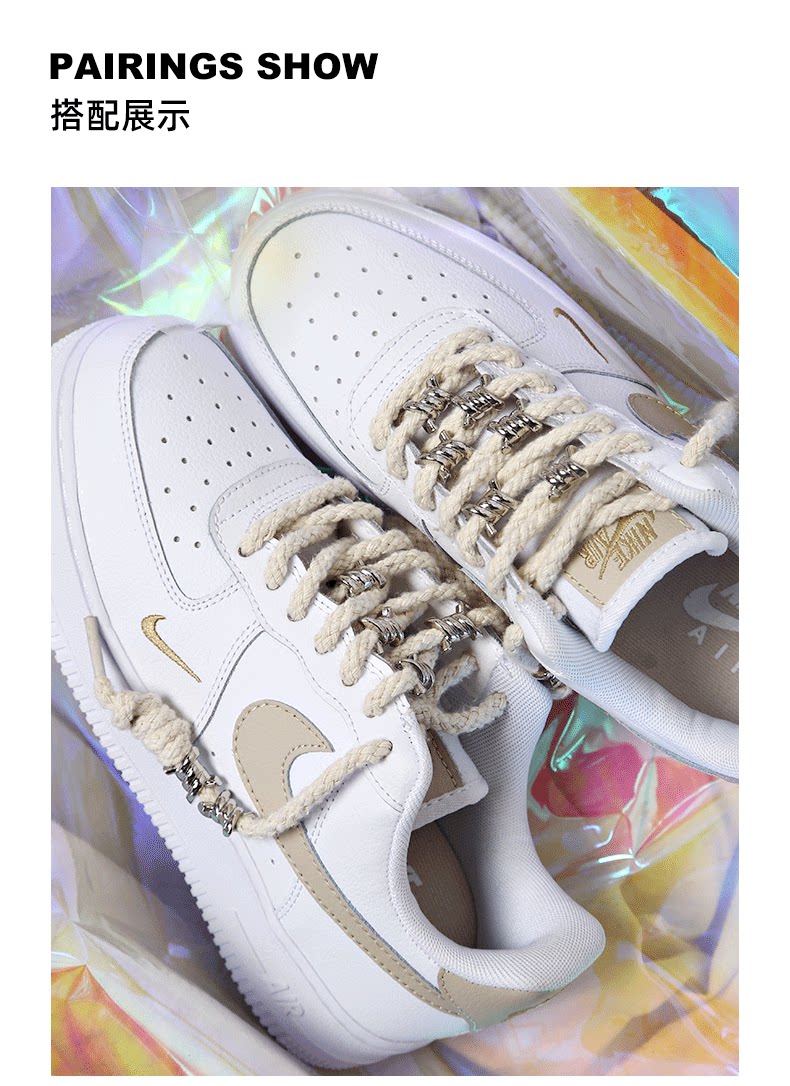 Nike Air Force 1, спортивная обувь, шнурки, кроссовки, бежевый аксессуар, из хлопка и льна