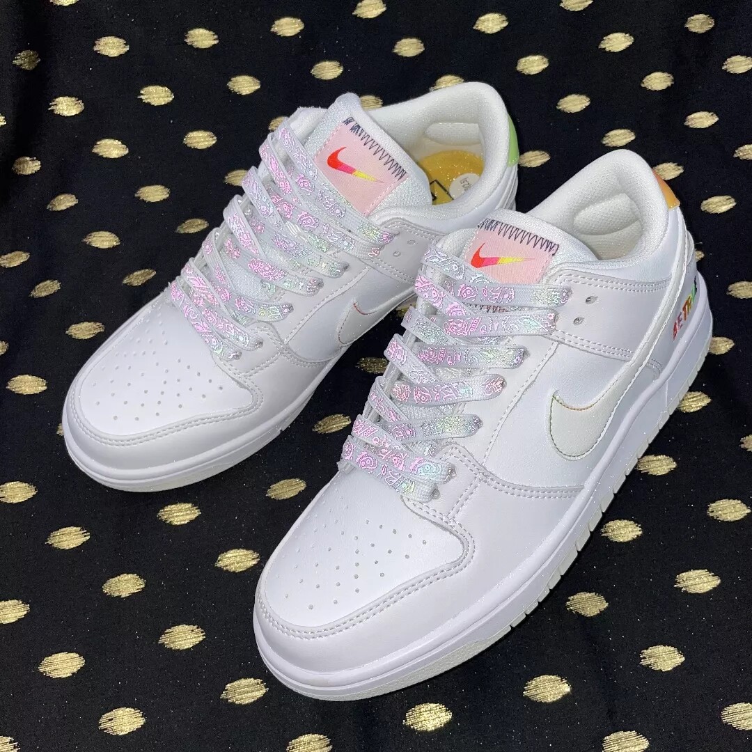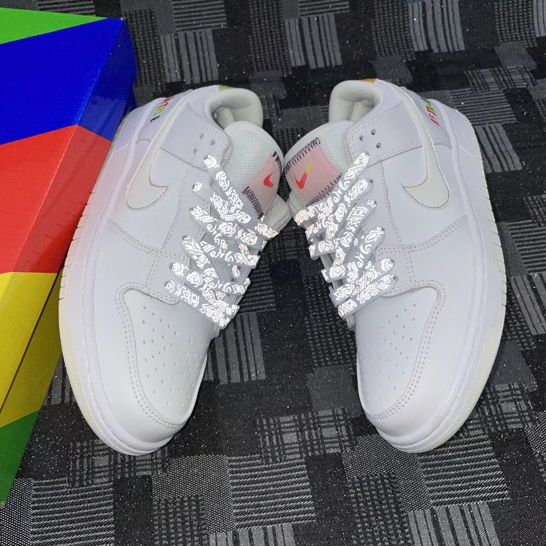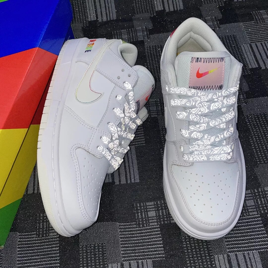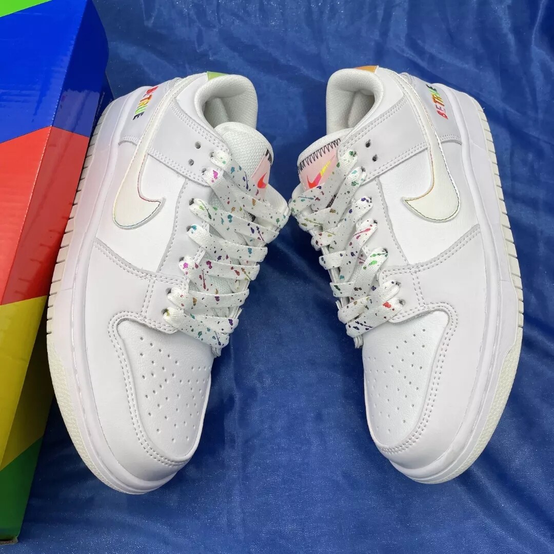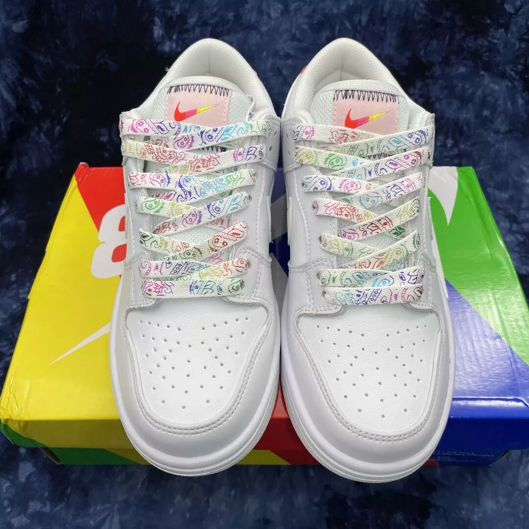 Адаптированный SB Dunk предал белый градиент радуги, царапающий AF1 ВВС № 1 Пояс Weibi