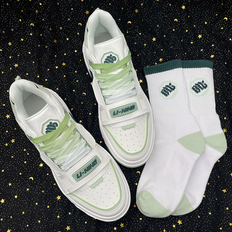 CMFY адаптируя подкладку Li Ning Новый новичок, белая зеленая трава и дерево и дерево, все солдаты баскетбольные туфли, носки и сета
