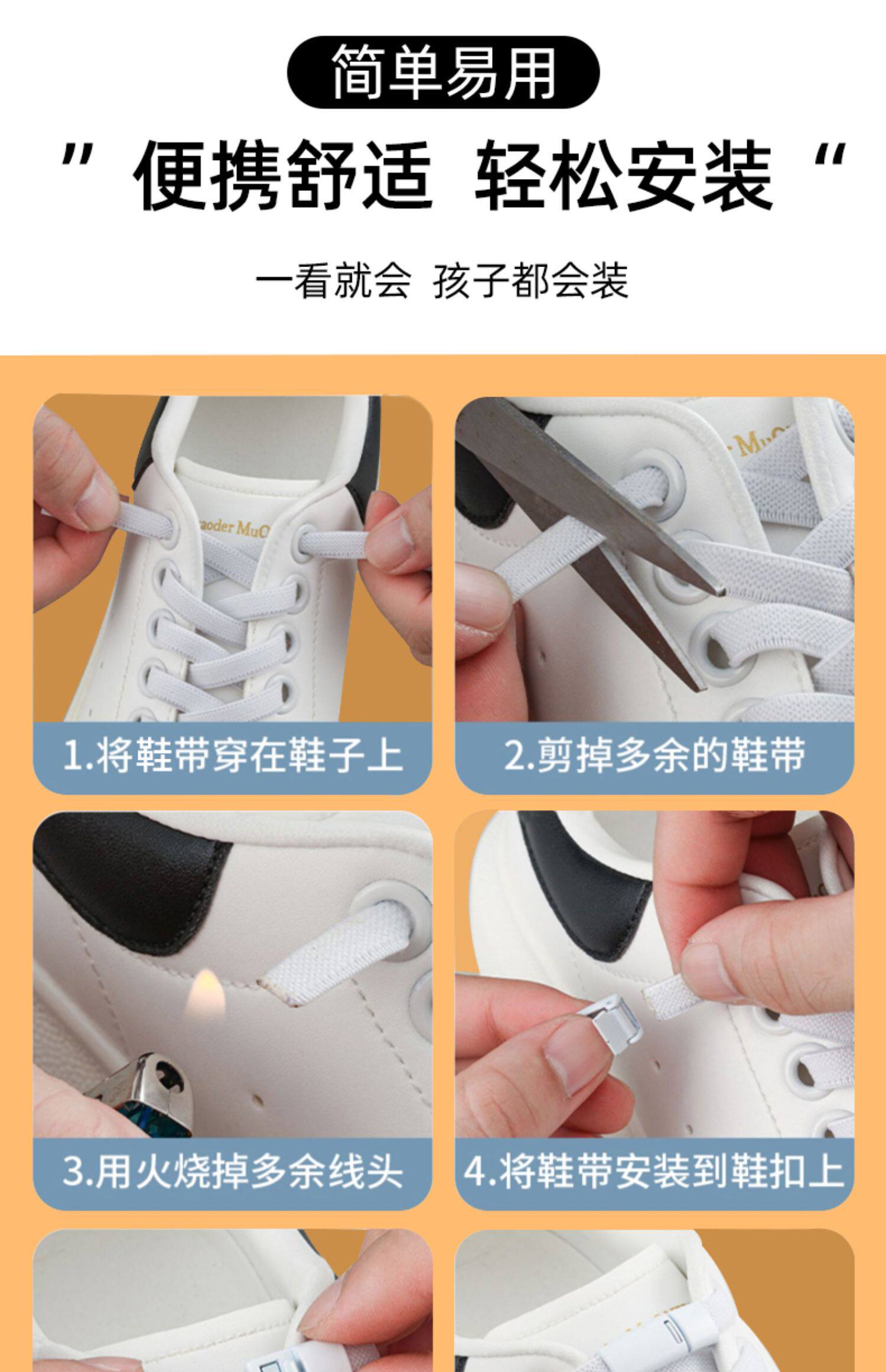Эластичные белые шнурки, детская пряжка для обуви подходит для мужчин и женщин, свободный крой