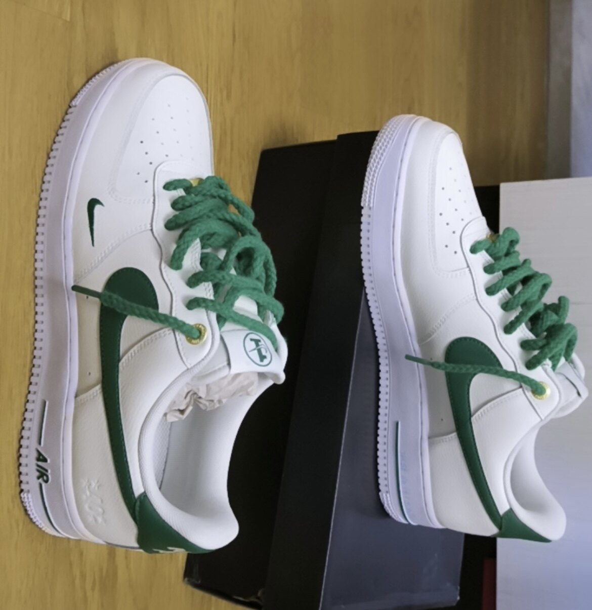 Nike Air Force 1, малахитовые зелёные шнурки, 40, градиент
