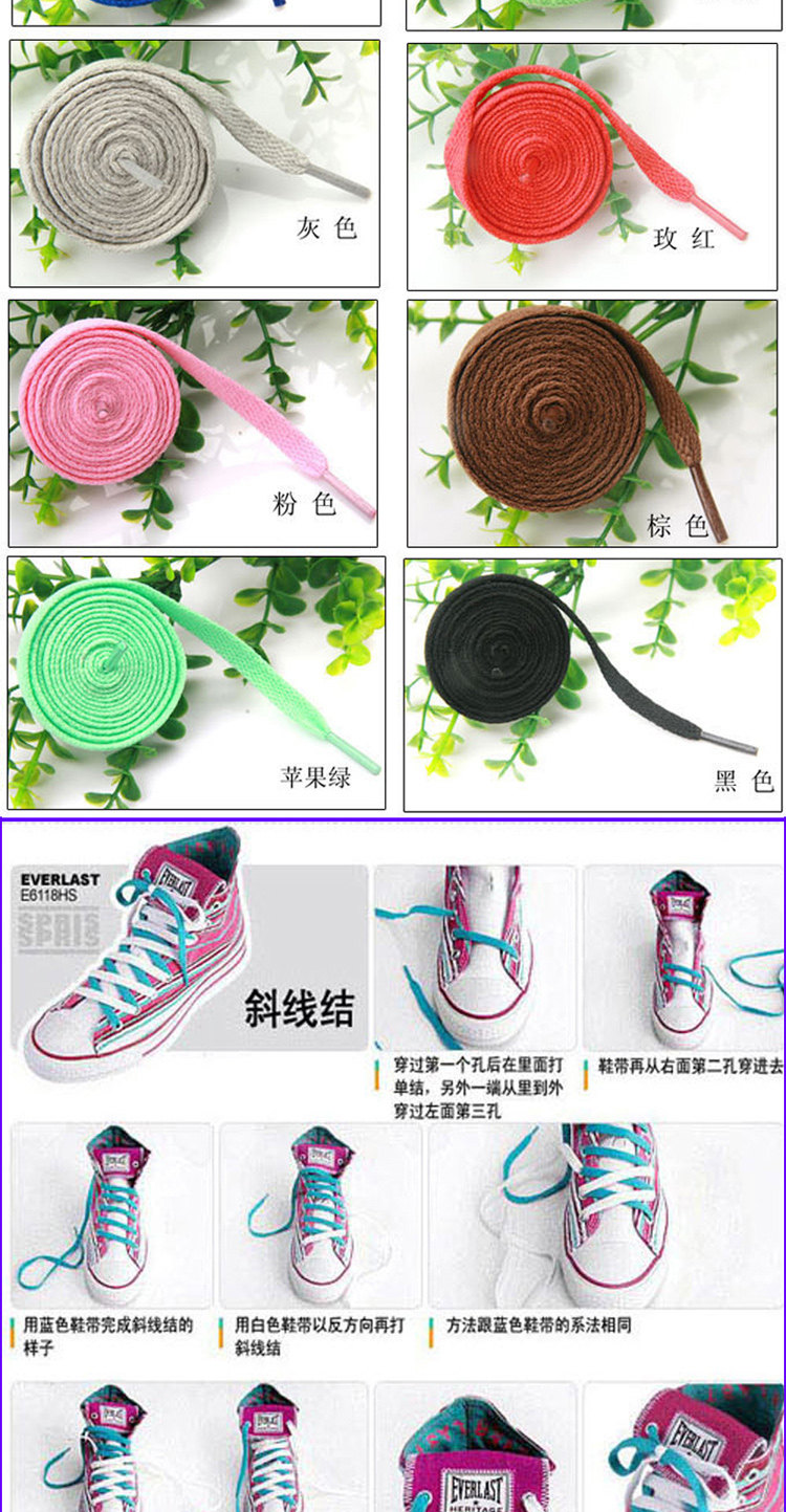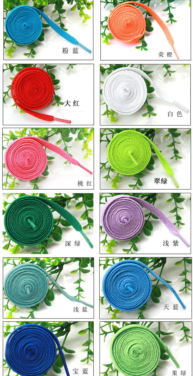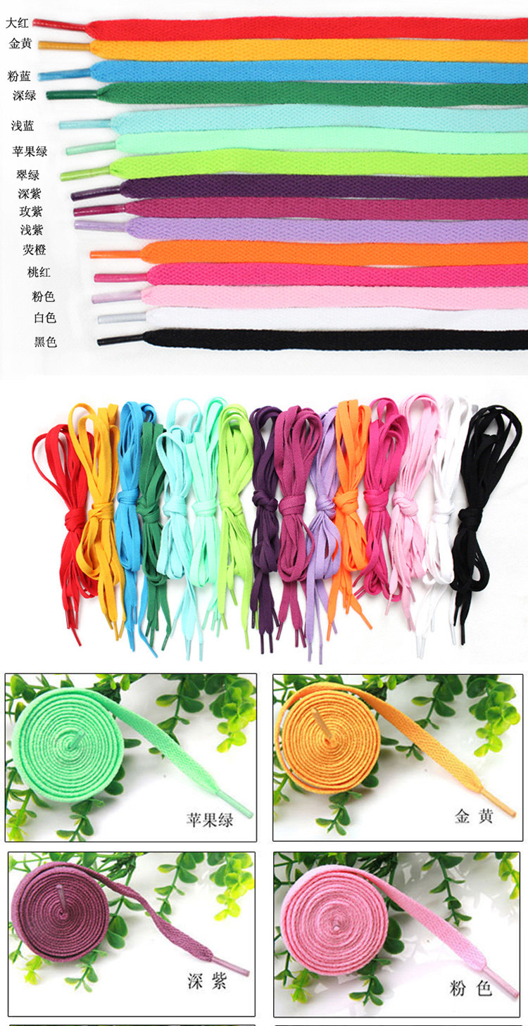 Характеристики шнурков: длина около 130 см, ширина около 0,8 см.