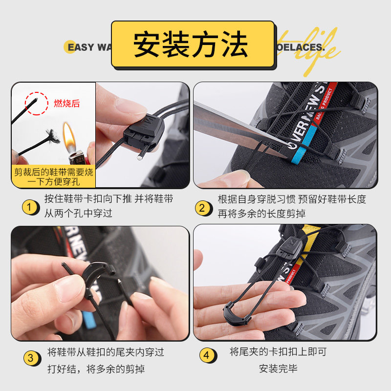 Применимо к Salomon XTQUEST Shoelaces, быстро -модушную пряжку для обуви, затяните неподвижные фиксированные мужчины белые и черные тонкие веревки