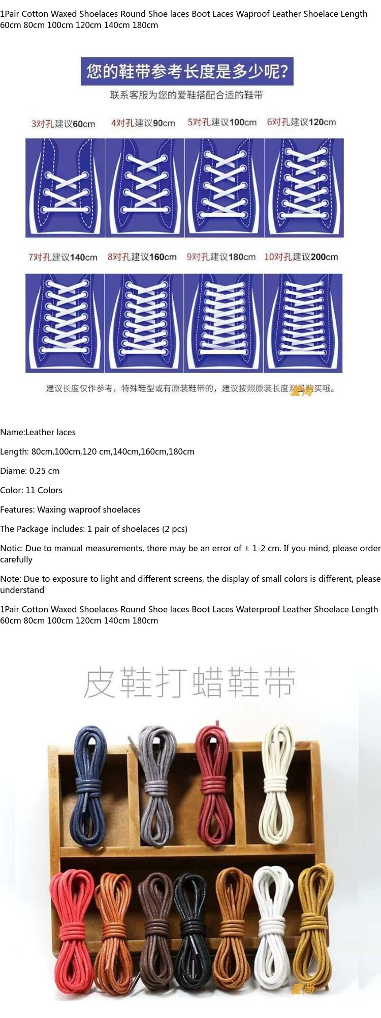 1PAIR Хлопковые восковые шнурки круглые шнурки для шнурков
