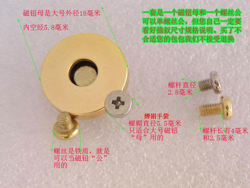 Это винт, который используется в качестве кнопки на кошельке, которая может быть не постричена и установлена. Эта винтовая пряжка с высокой и продвинутой.Материал винта - железо, магнитная кнопка, см. Рисунок ниже для получения подробной информации