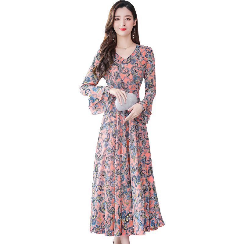 Шифоновое осеннее платье, юбка, 2020, в западном стиле, по фигуре
