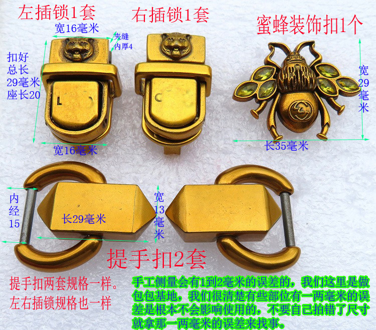 | Цвет: | По 1 комплекту старинных золотых врезных замков левый и правый каждый, 1 комплект старинных золотых левых врезных замков, 1 комплект старинных золотых замков врезных правых., 2 набора древних золотых подъемов, 1 старинная золотая декоративная пряжка в виде пчелы. |