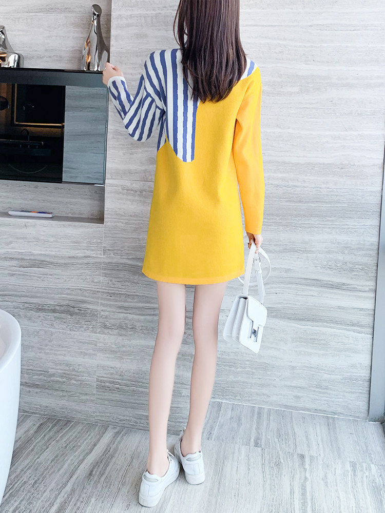 Желтое платье, трикотажная юбка, осеннее, подходит для подростков, свободный прямой крой