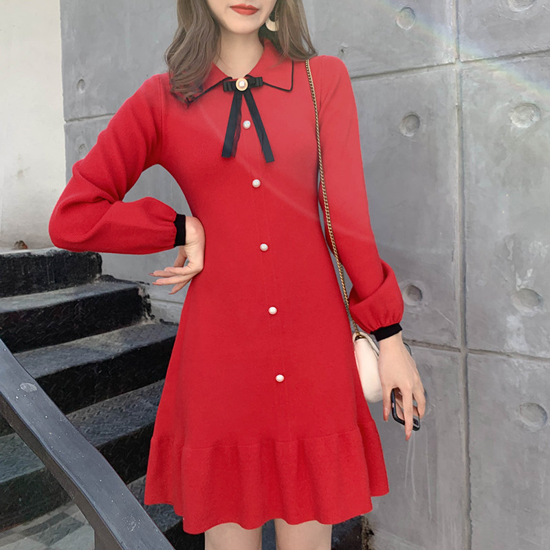 Демисезонная красная юбка, базовое шерстяное платье, городской стиль, подходит для подростков