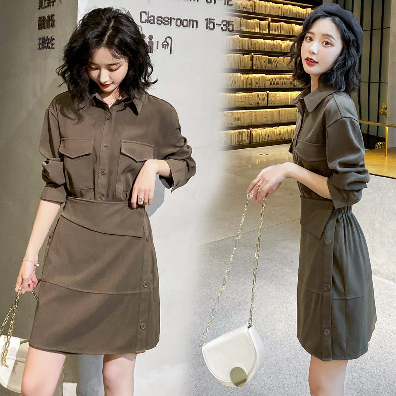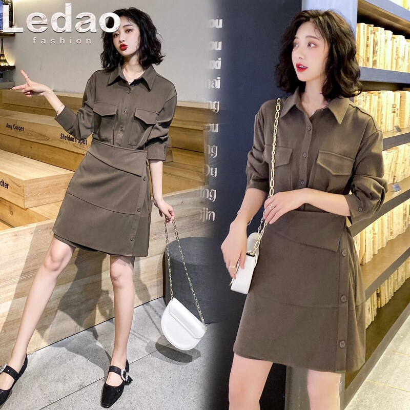 Осенний комплект, юбка, рубашка, в корейском стиле, подходит для подростков, в западном стиле