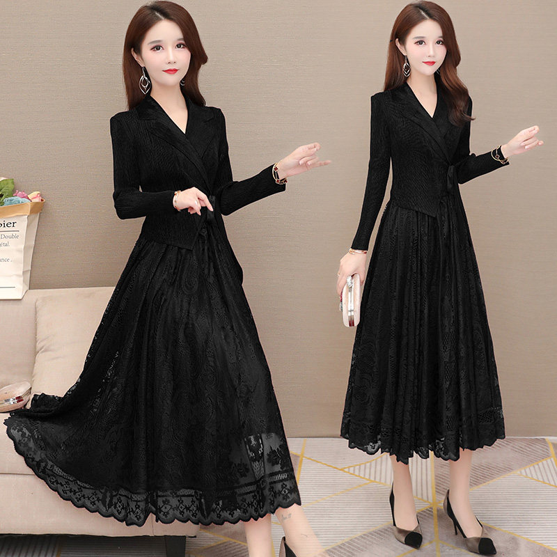 Модный кружевной лонгслив, осенний приталенный бархатный корсет, базовая длинная юбка, коллекция 2021