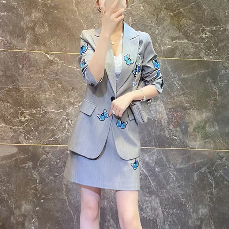 创狐衣品 Летний элитный пиджак классического кроя, классический костюм, юбка, комплект, сезон 2021, яркий броский стиль