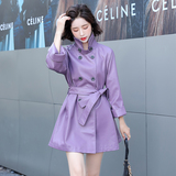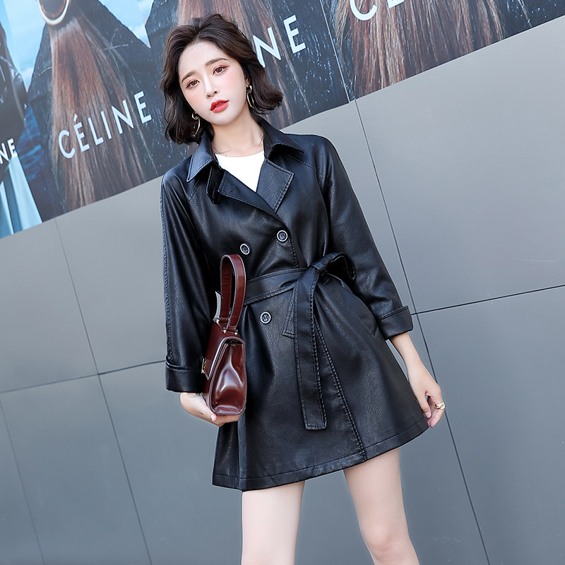 Длинная полиуретановая осенняя модная куртка, средней длины, коллекция 2021, городской стиль