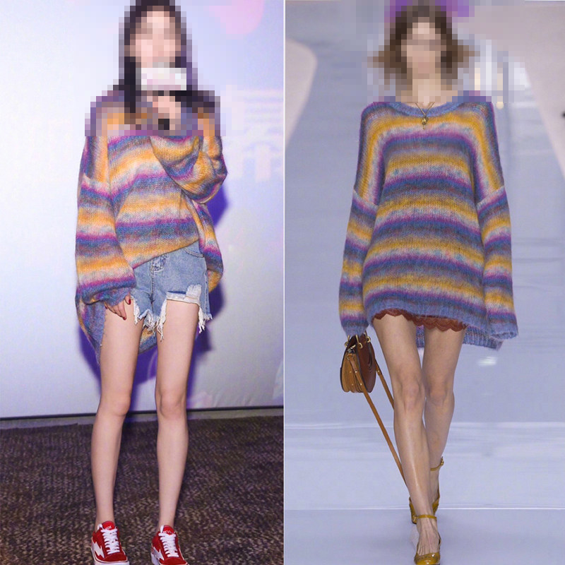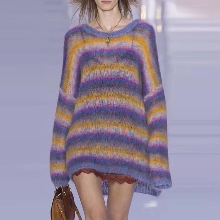 Радужный демисезонный длинный трикотажный шерстяной свитер, популярно в интернете, коллекция 2021, средней длины