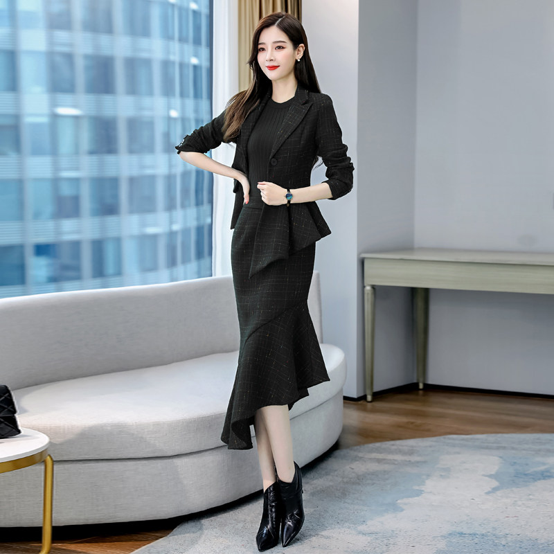 Юбка, шерстяной осенний комплект, крой «рыбий хвост», 2021 года