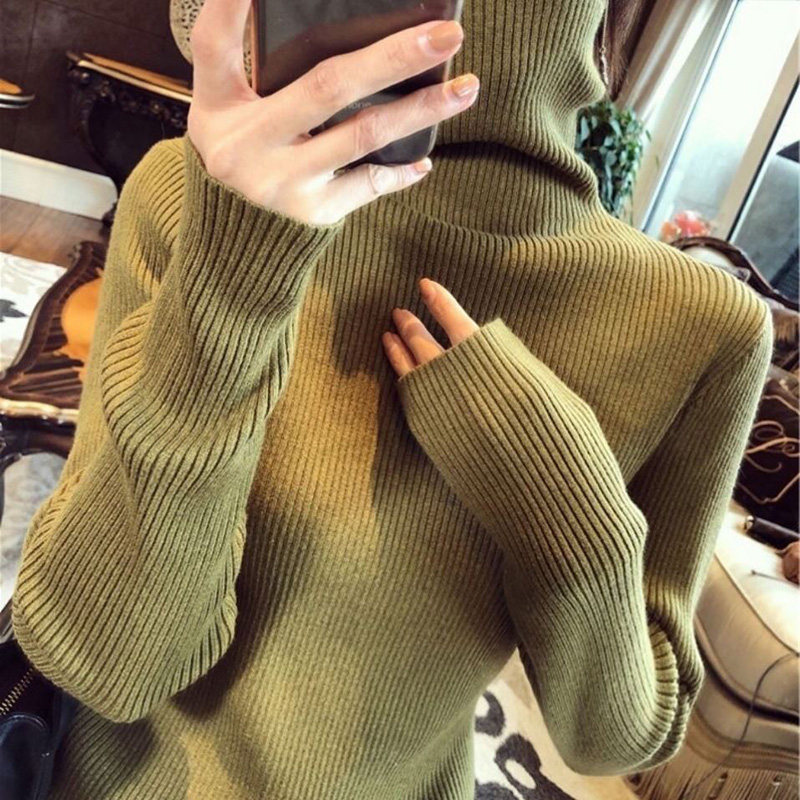 Базовый приятный телу демисезонный трикотажный лонгслив, свитер, высокий воротник, 2020, в обтяжку, увеличенная толщина