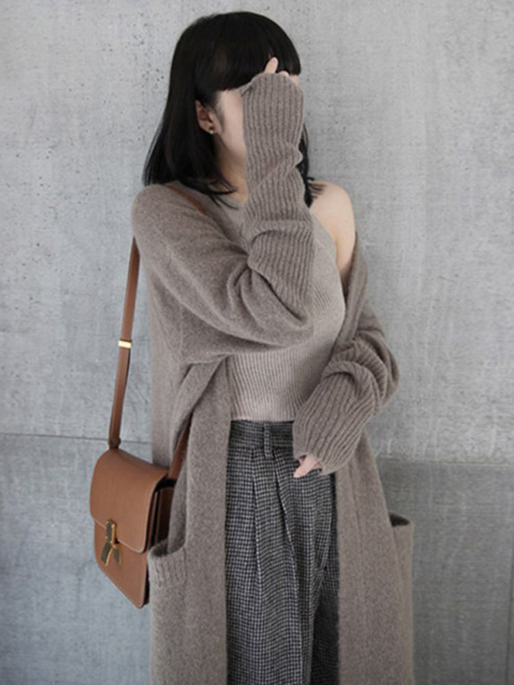 Демисезонный японский трикотажный свитер, длинный кардиган, куртка, 2021 года, городской стиль, оверсайз, средней длины