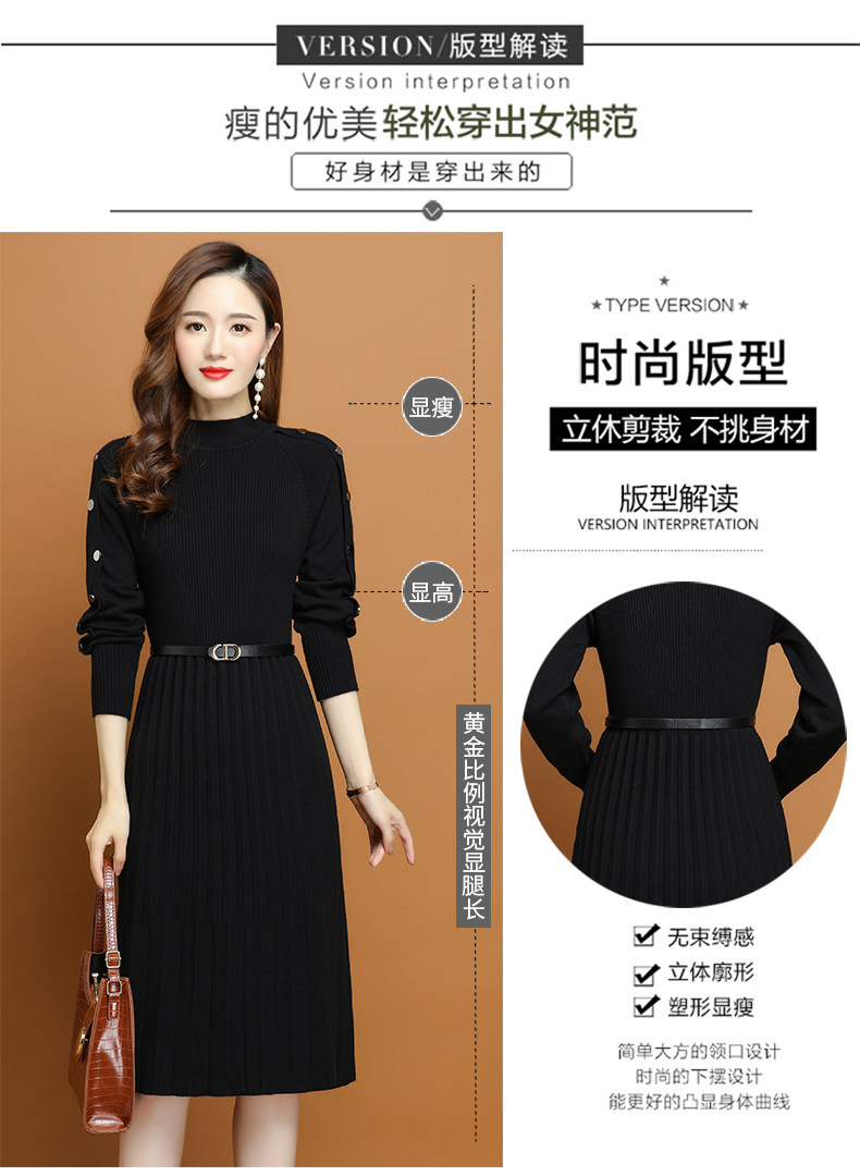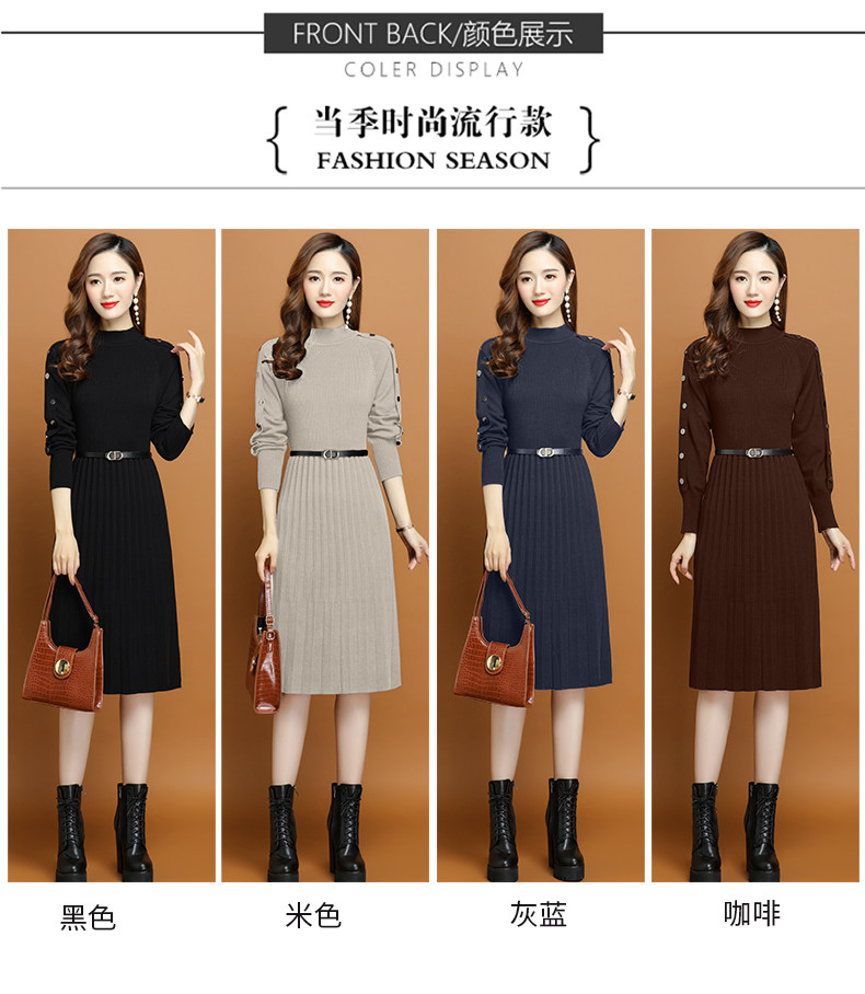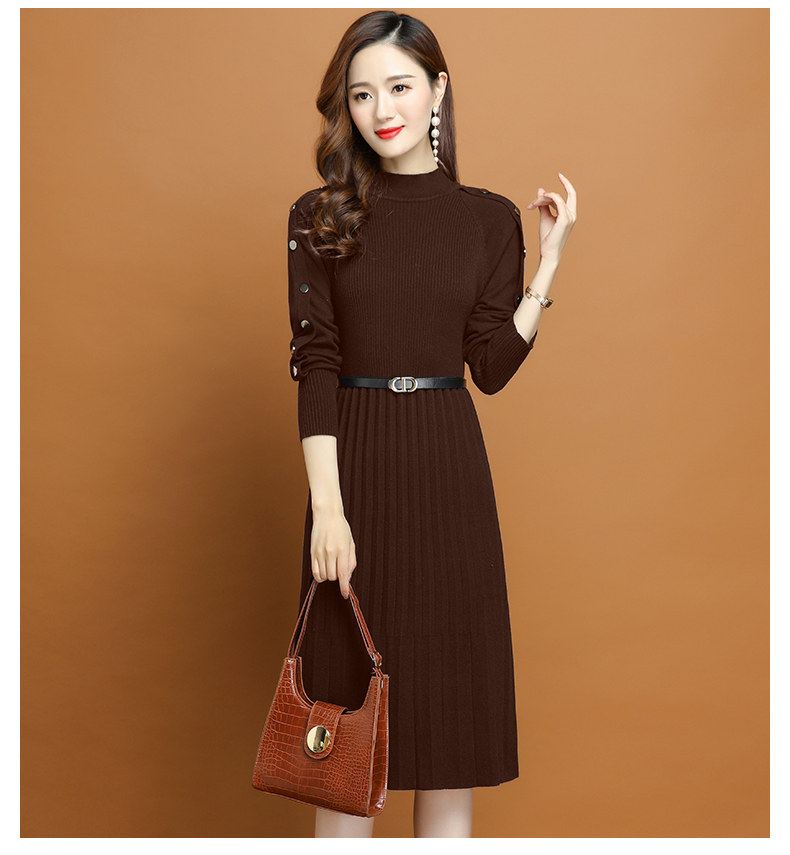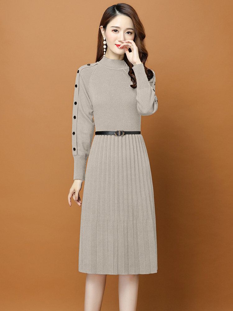 Демисезонное трикотажное платье, свитер, комплект, юбка, 2020 года, подходит для подростков, в западном стиле, высокий воротник