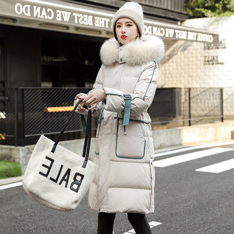 Дизайнерский длинный брендовый пуховик с пухом, тренд сезона, 2020 года, по фигуре, набивка пером