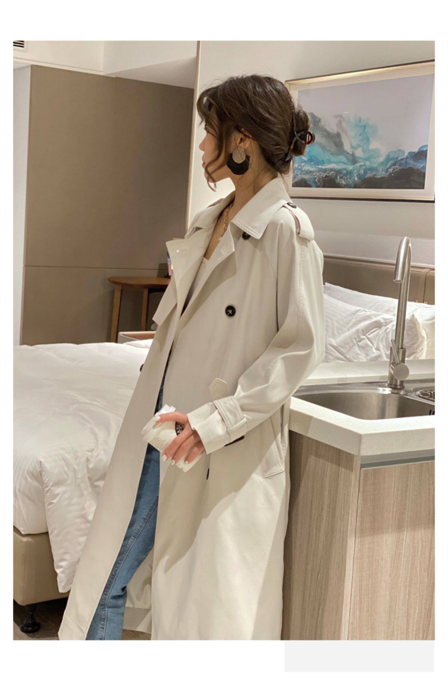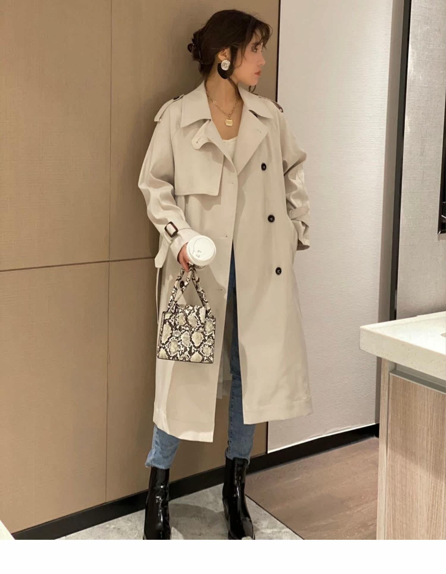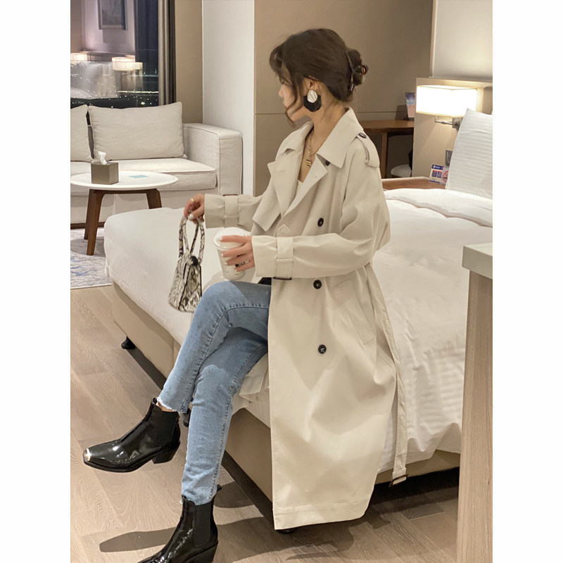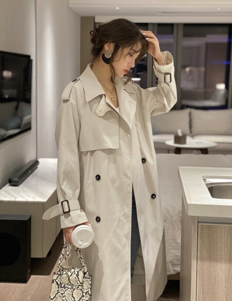 Длинный осенний плащ, пальто, средней длины, городской стиль, свободный крой, в британском стиле, подходит для подростков