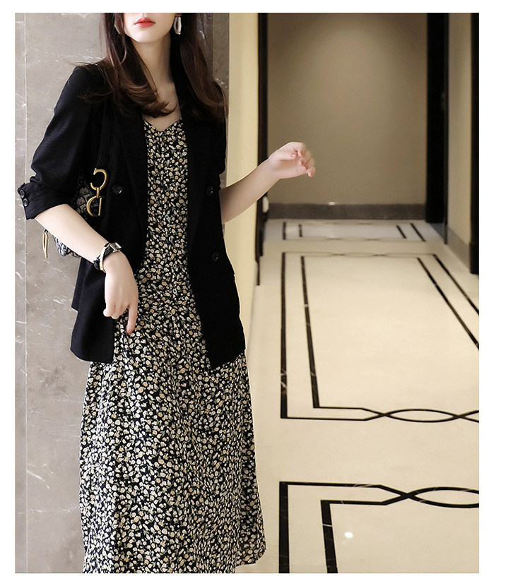Весенний пиджак классического кроя, платье, комплект, эффект подтяжки, в цветочек, в стиле Шанель, в западном стиле