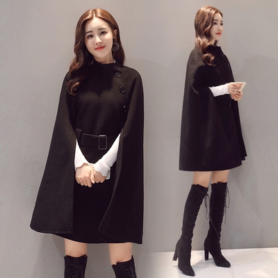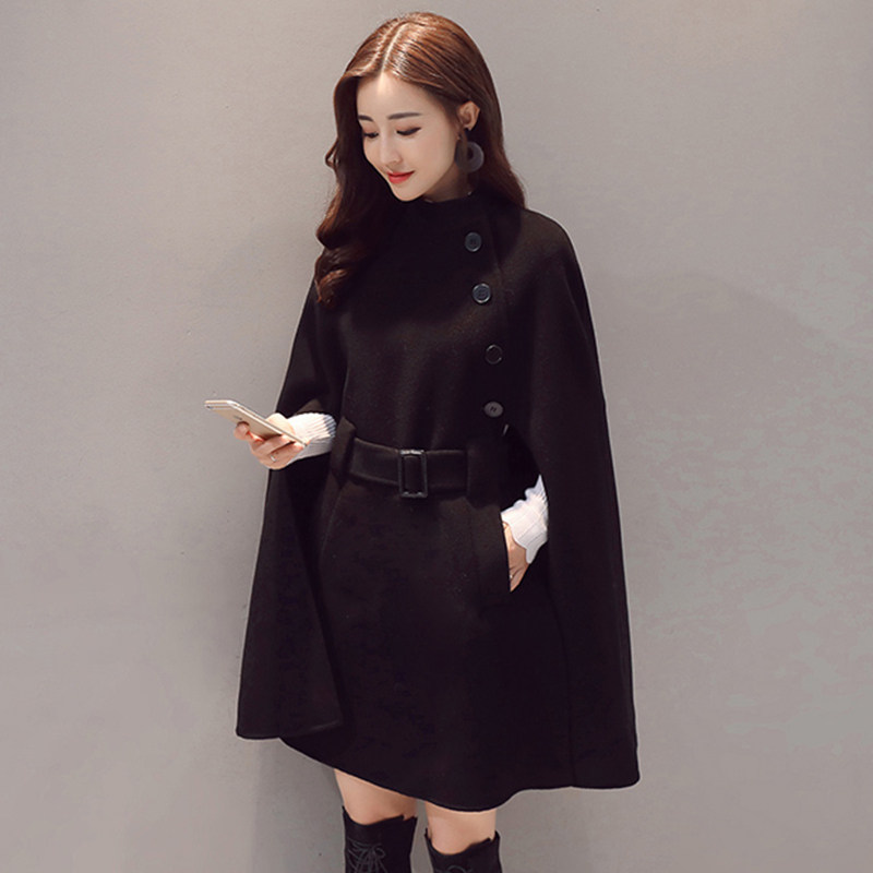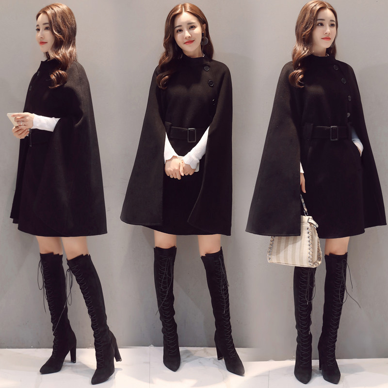 Шерстяная куртка, черная демисезонная накидка, плащ, длина миди, коллекция 2021