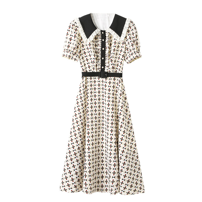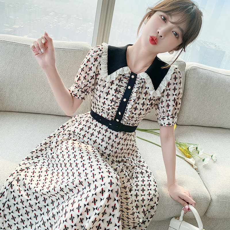 Летняя юбка, длинное платье, французский стиль, средней длины, городской стиль, яркий броский стиль, по фигуре, в цветочек