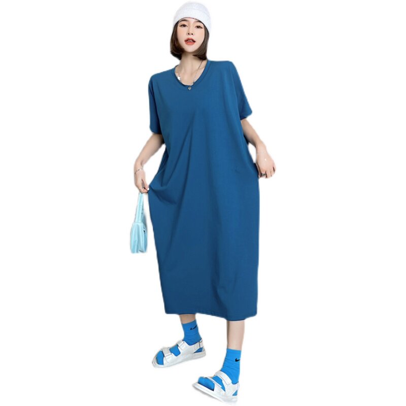 Летняя цветная футболка для отдыха с круглым воротником, платье, сезон 2021, оверсайз