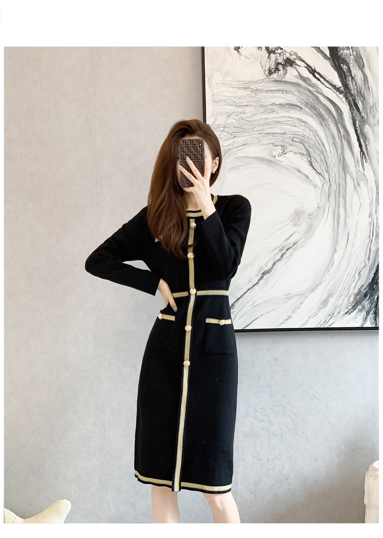 Длинное демисезонное приталенное трикотажное платье, осеннее платье, базовый лонгслив, юбка, в стиле Шанель