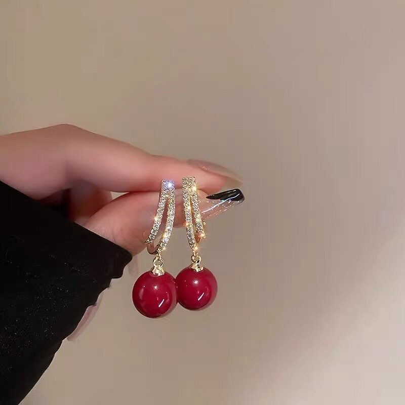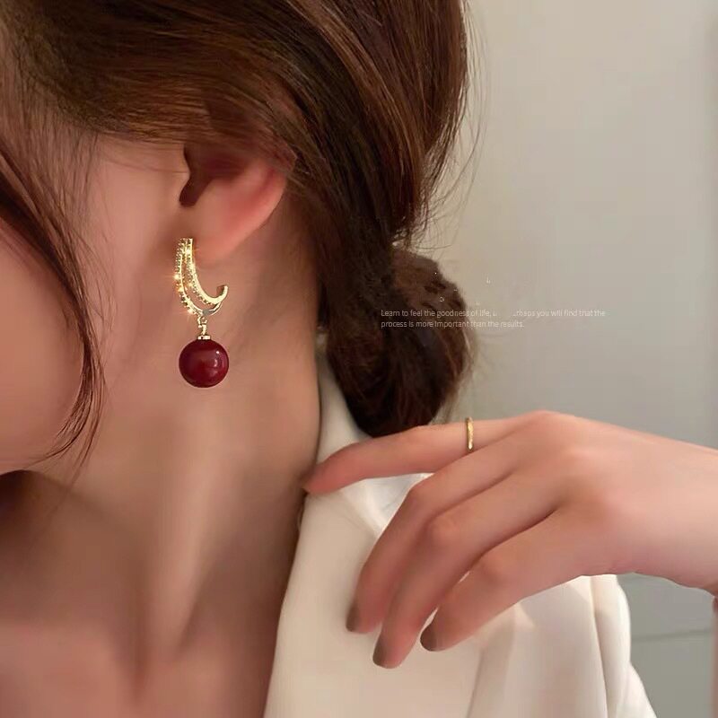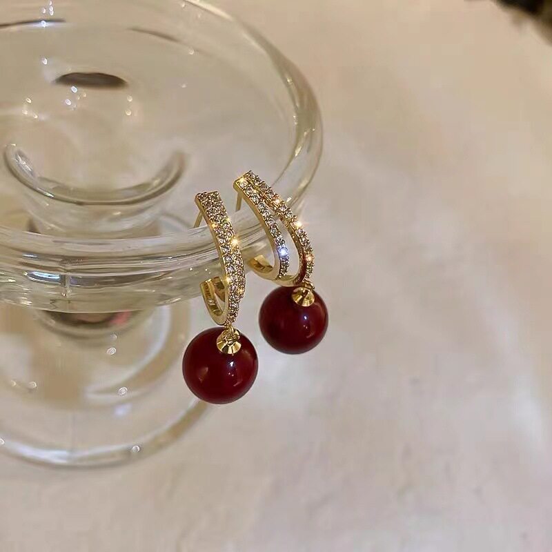 Дизайнерские ретро красные серьги из жемчуга, легкий роскошный стиль, изысканный стиль