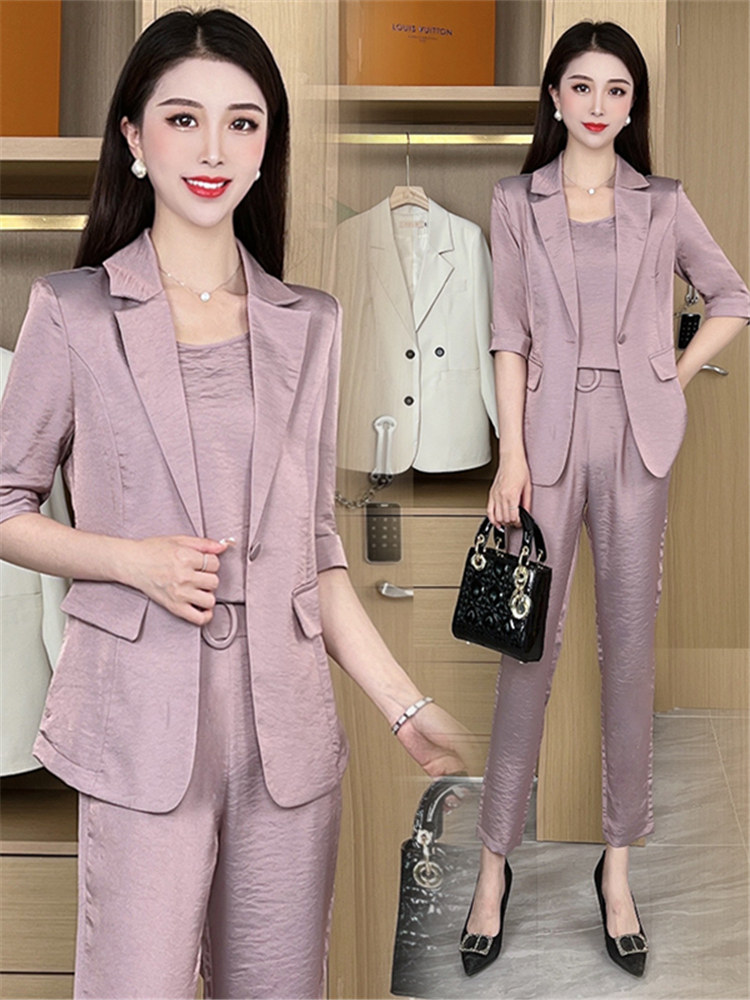 Осенний летний элитный тонкий комплект, классический костюм, 3 предмета, в западном стиле