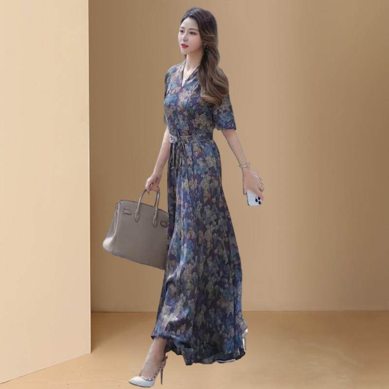 Ткань, платье, шифоновая шелковая летняя одежда, длинная юбка, коллекция 2023