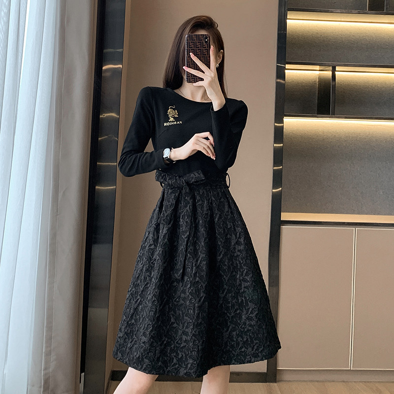 Демисезонное платье, приталенный корсет, лонгслив, юбка, изысканный стиль, в цветочек, городской стиль, французский стиль