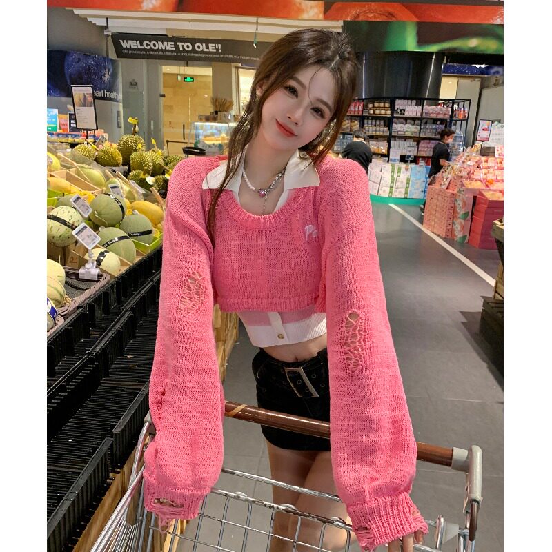 Трикотажный свитер, дизайнерский модный короткий осенний комплект, тренд сезона