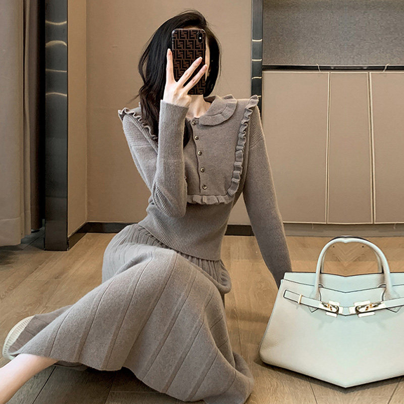 Трикотажный комплект, пуховик, платье, изысканный стиль, в западном стиле, коллекция 2023, французский стиль, в стиле Шанель
