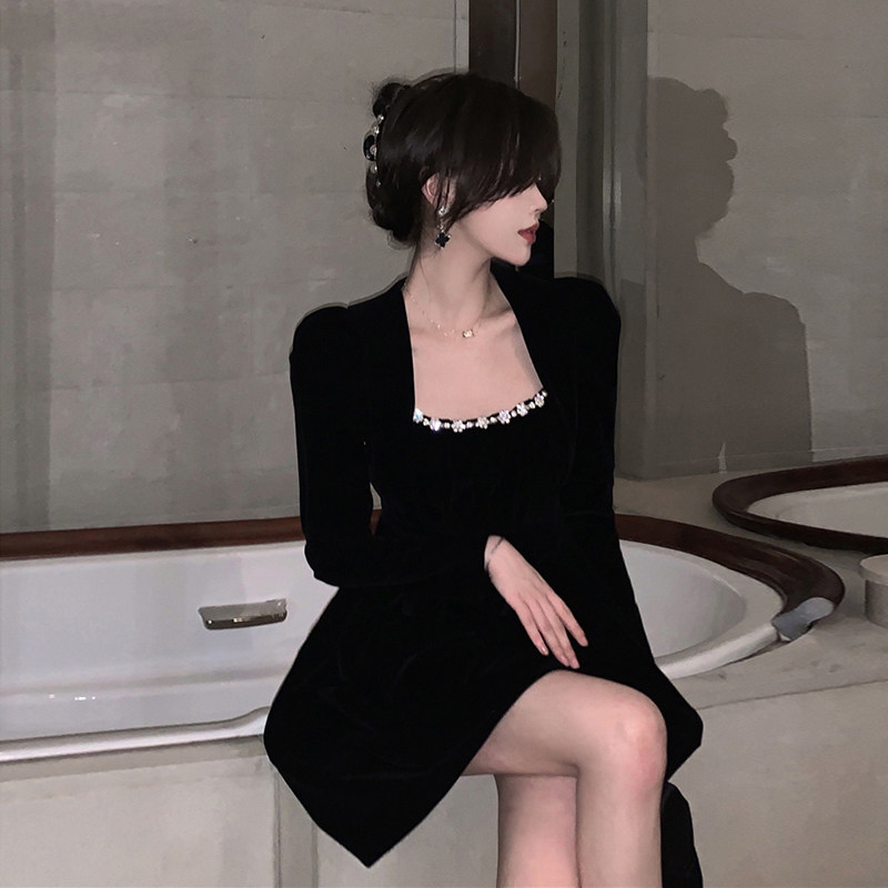 Черное осеннее платье, модный приталенный корсет, юбка, коллекция 2022