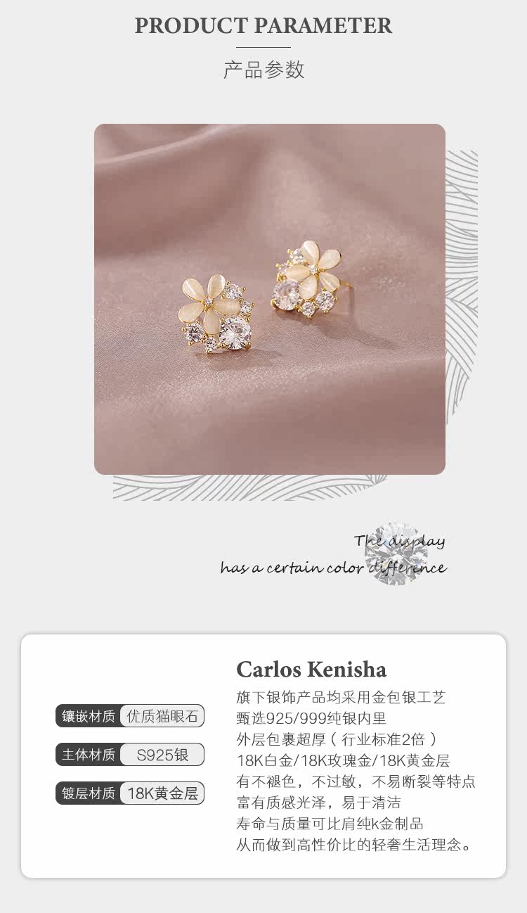 Carlos Kenisha Серьги, кошачий глаз, в цветочек, яркий броский стиль, изысканный стиль