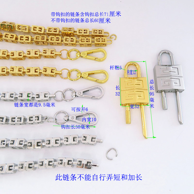 Серебристо-белый золотой аксессуар для сумки, квадратная цепь, упаковка, бретели