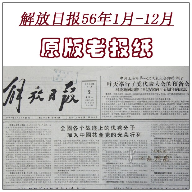 Jiefang Daily 1956 Оригинальная старая газета в 1950 -х годах 50 -летия газеты по случаю дня рождения, посвященные творческой коллекции подарки