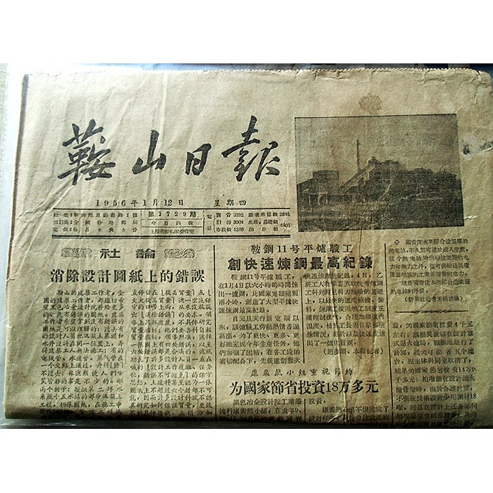 В 1950 -х годах, ранняя ежедневная газета, 12 января 1956 г. Anshan Daily