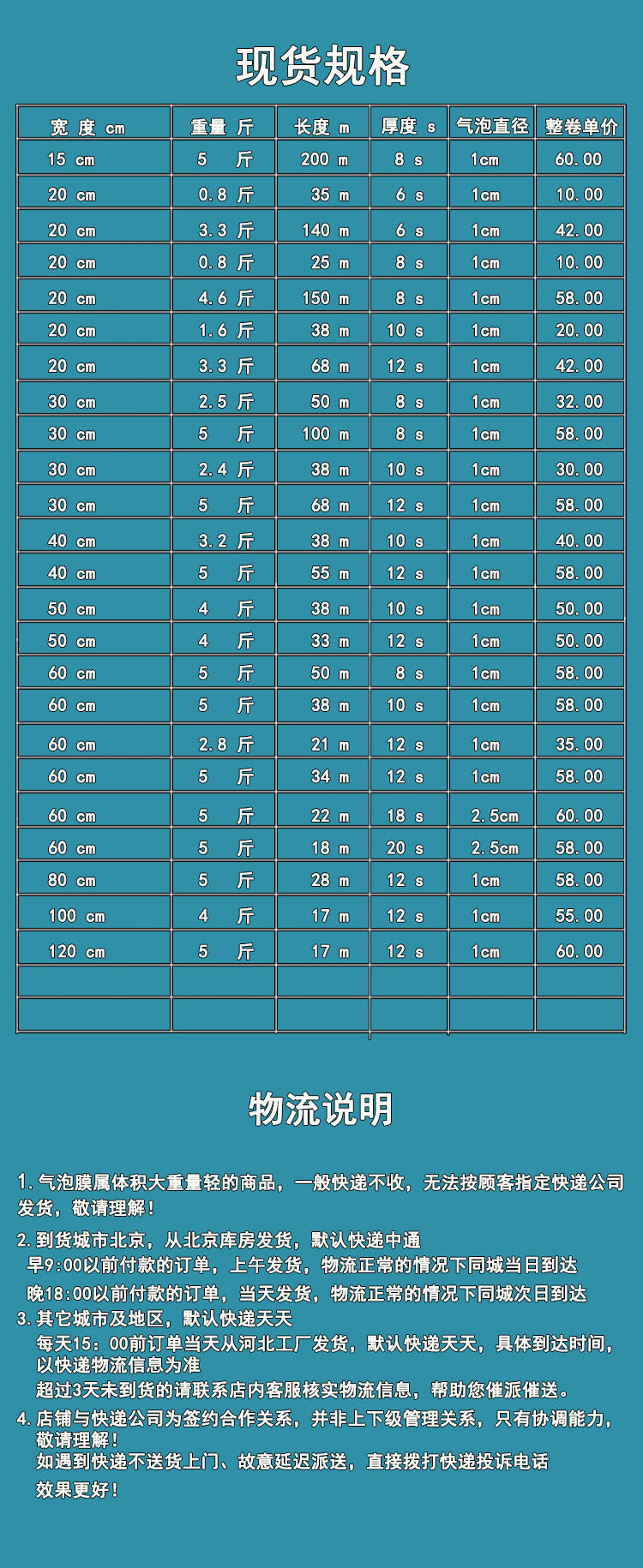 - Ширина 20 см. Вес 0,8 Catties длиной 15 метров толщины 10 маленьких пузырьков 1 см.