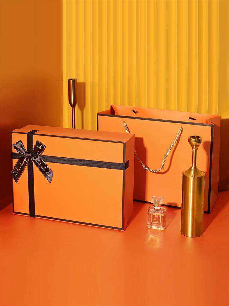 Красная подарочная коробка настоящая упаковочная коробка набор пакетов апельсиновый розовый черный