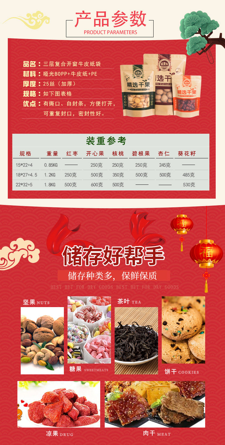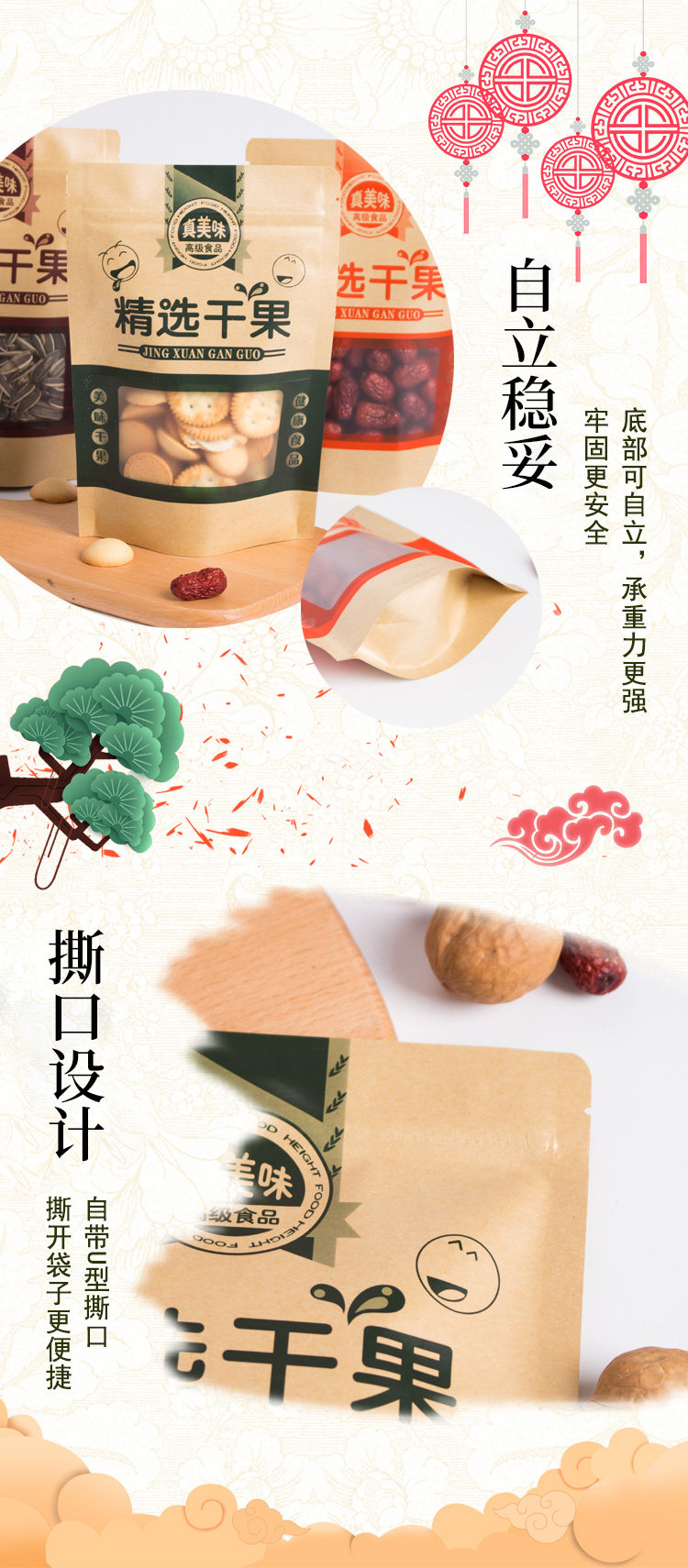 Повседневная упаковочная упаковка сухой фруктовый мешок с самим