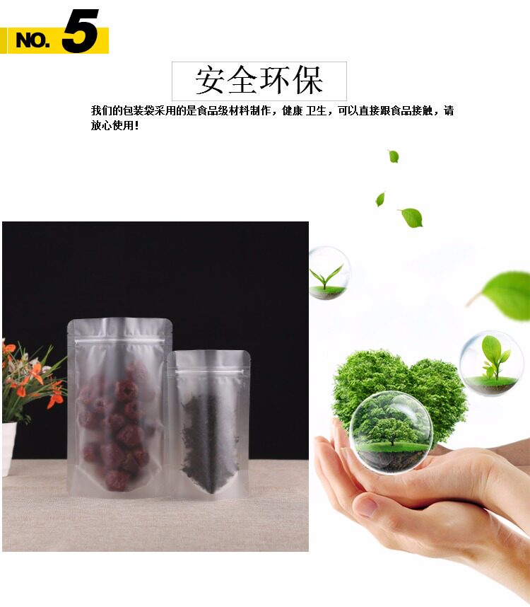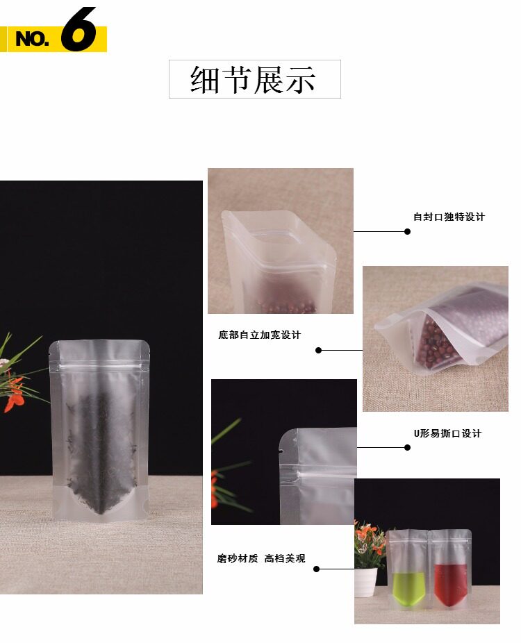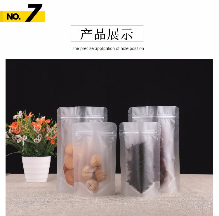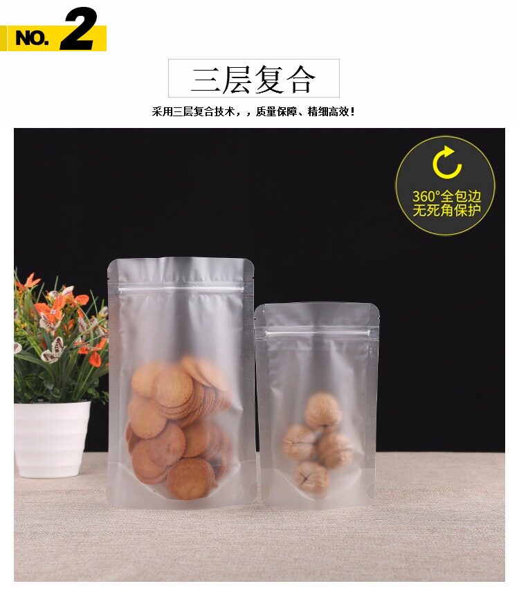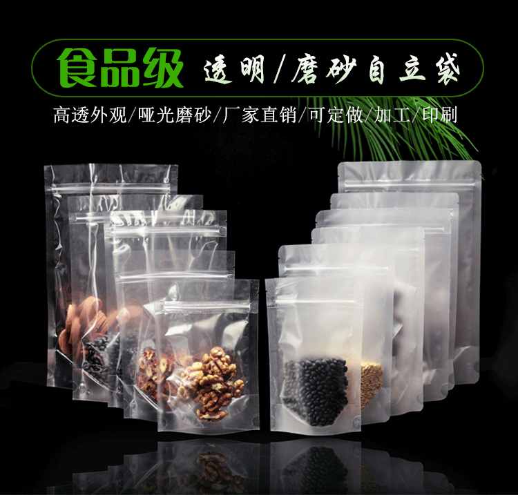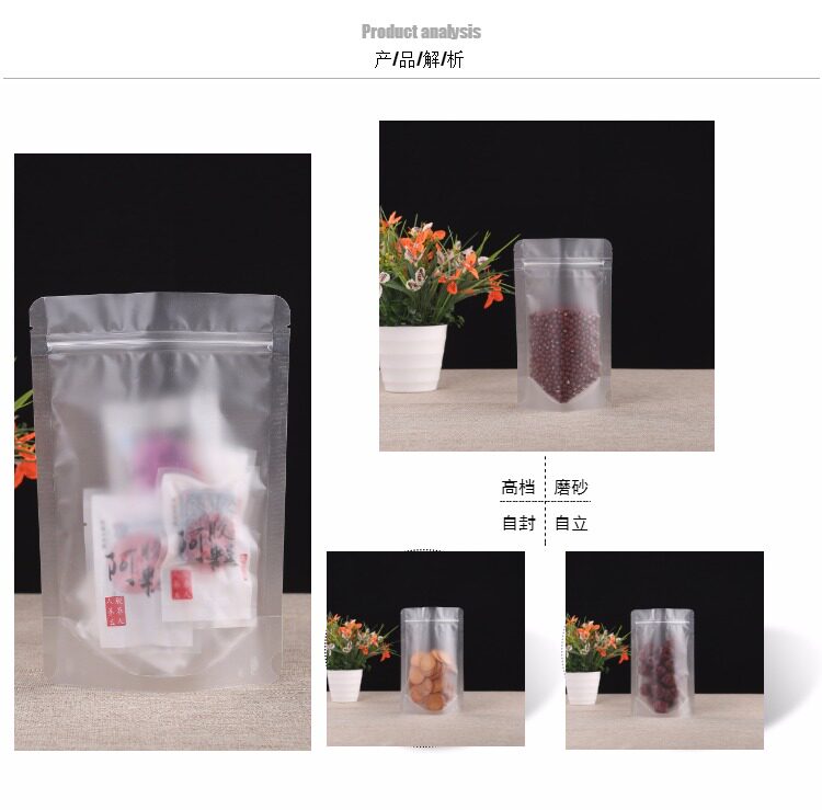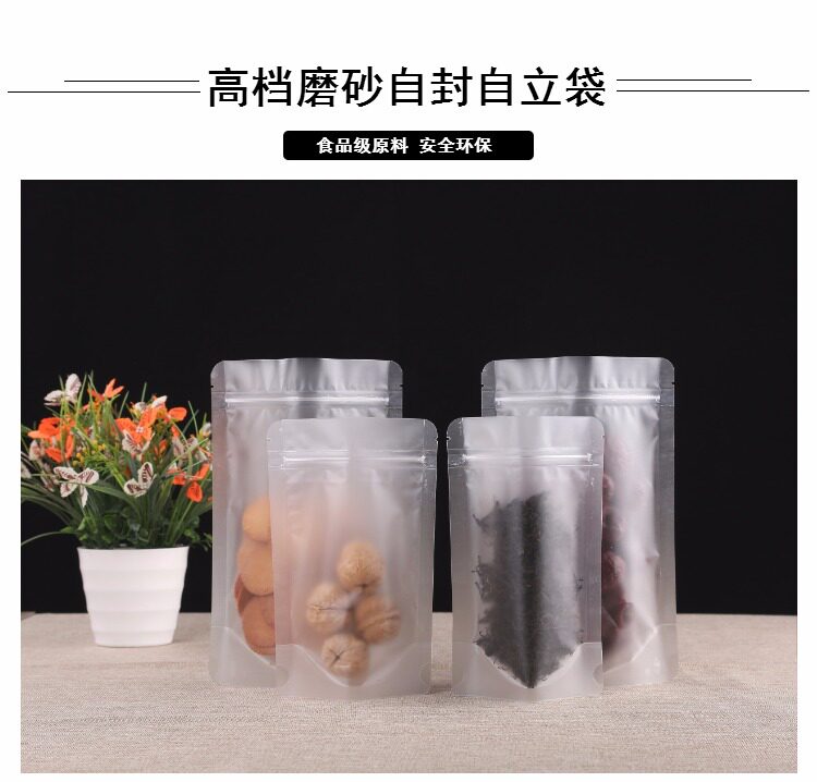 Прозрачный матовая самооценка мешка с толстой пищевой упаковкой сухой фруктовый чайный уплотнение карманное уплотнение пластиковый пакет плюс печать