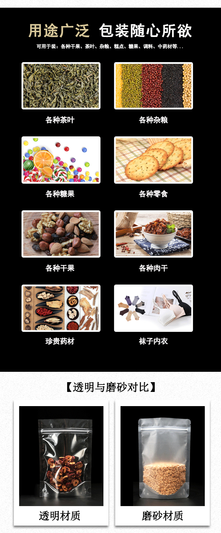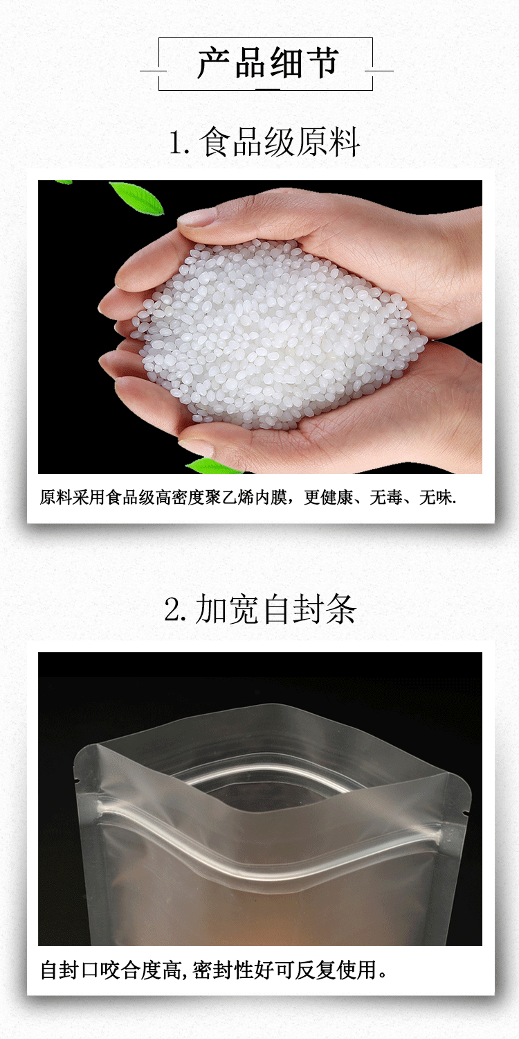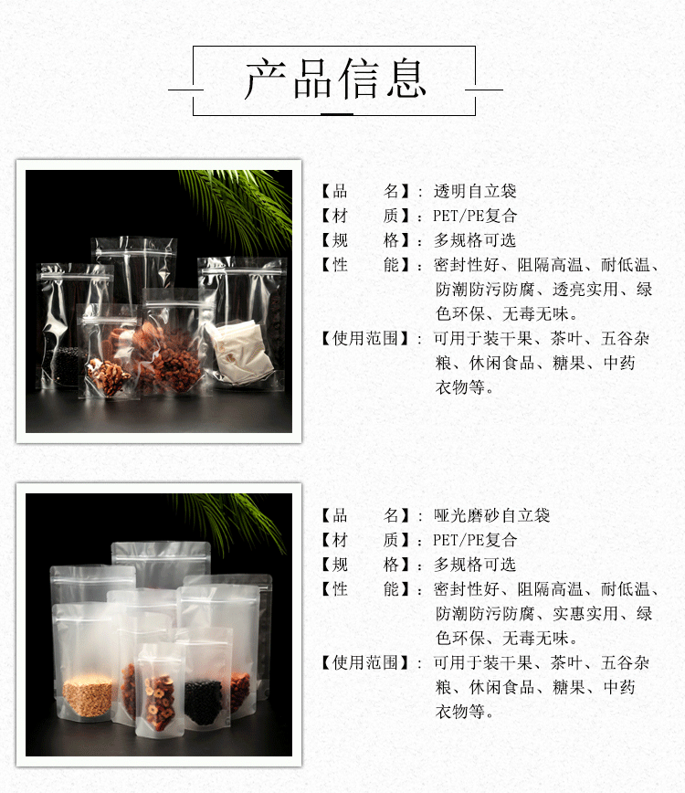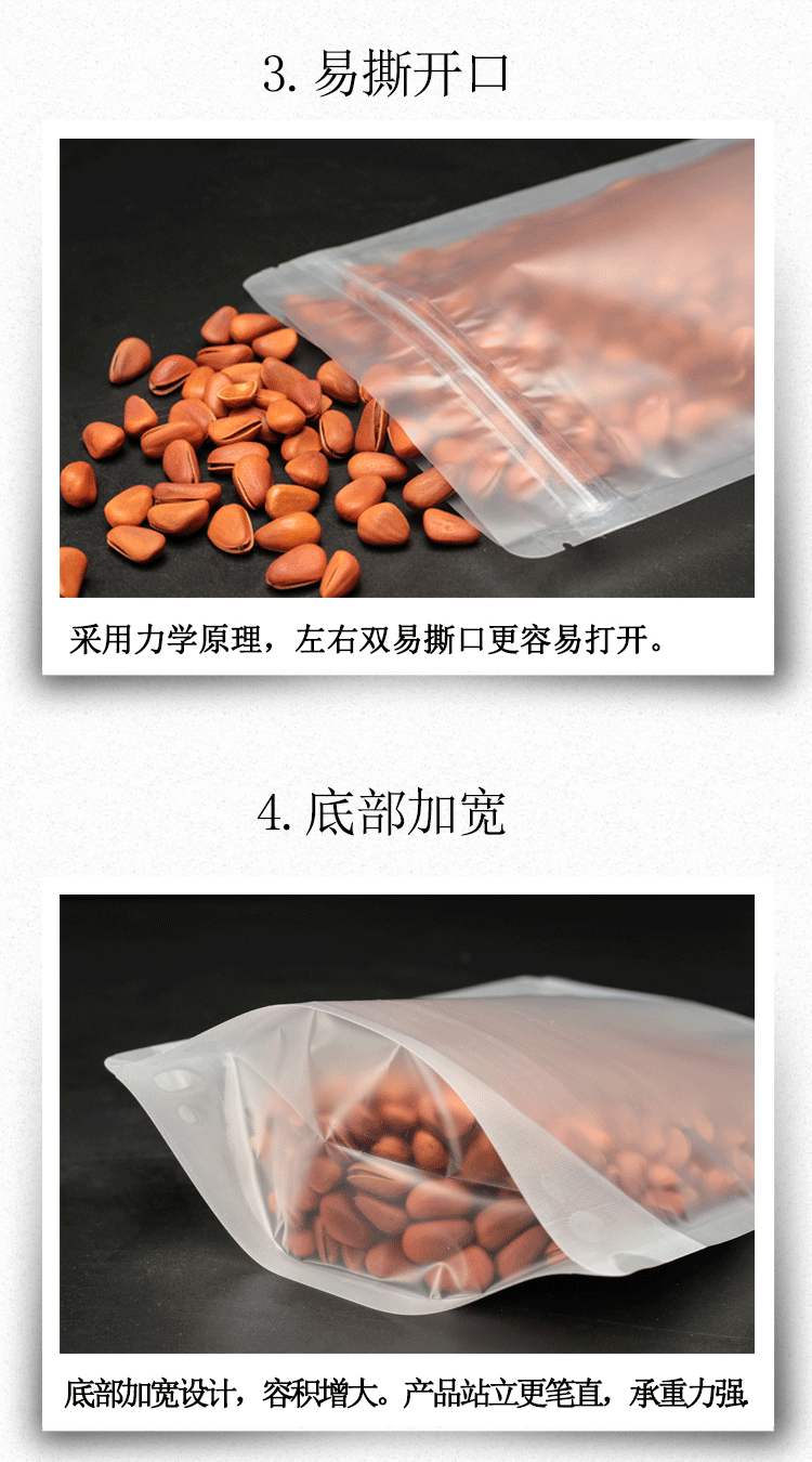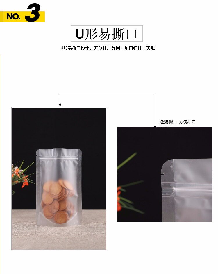 Прозрачный матовая самооценка мешка с толстой пищевой упаковкой сухой фруктовый чайный уплотнение карманное уплотнение пластиковый пакет плюс печать