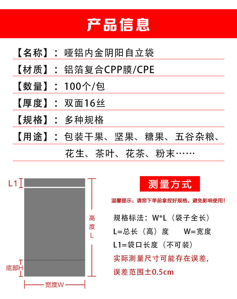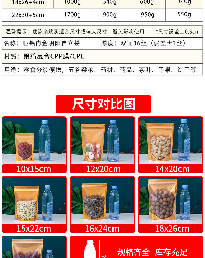 Тупой алюминиевый золото инь и ян сами -мешок для костей полупрозрачные упаковочные пакетные сумки Специализированная сухое фруктовое пище