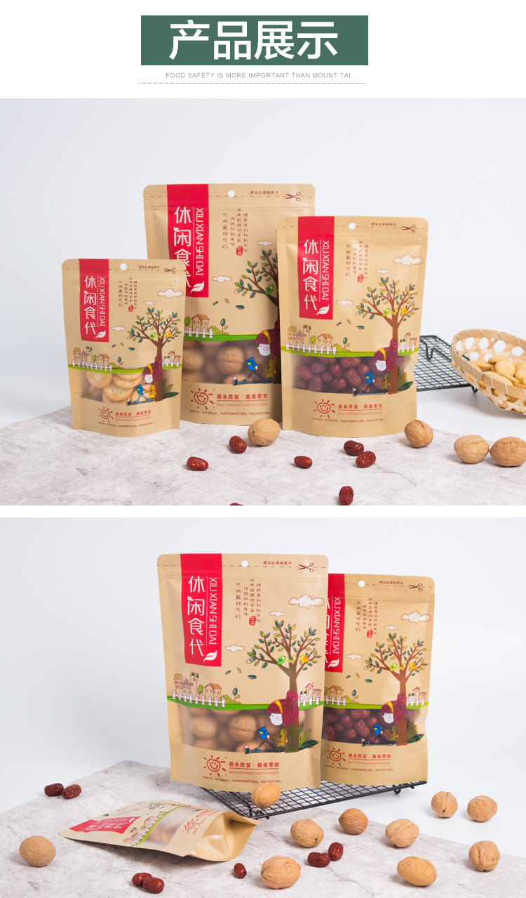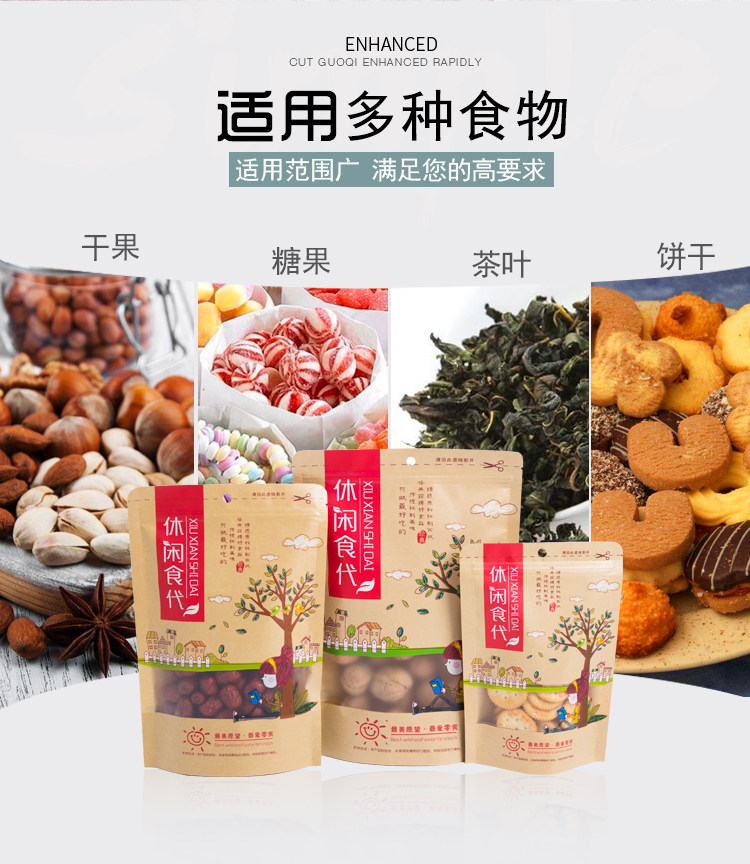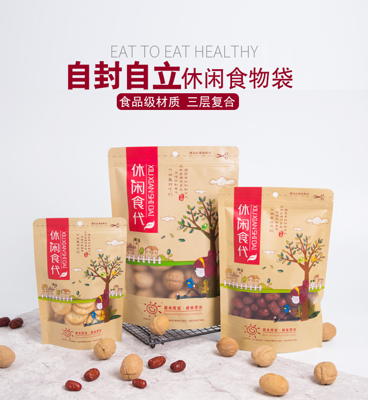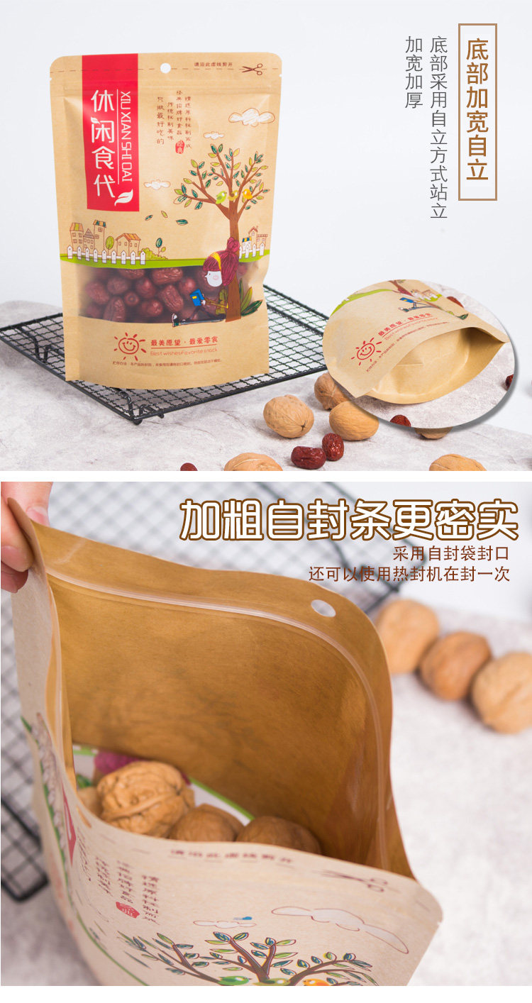 Сумка для упаковки сухой фрукты с печеночным пакетом для кожи для бумажных пакетов с закусками.