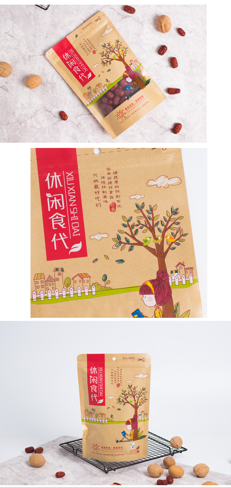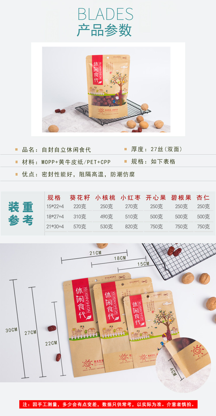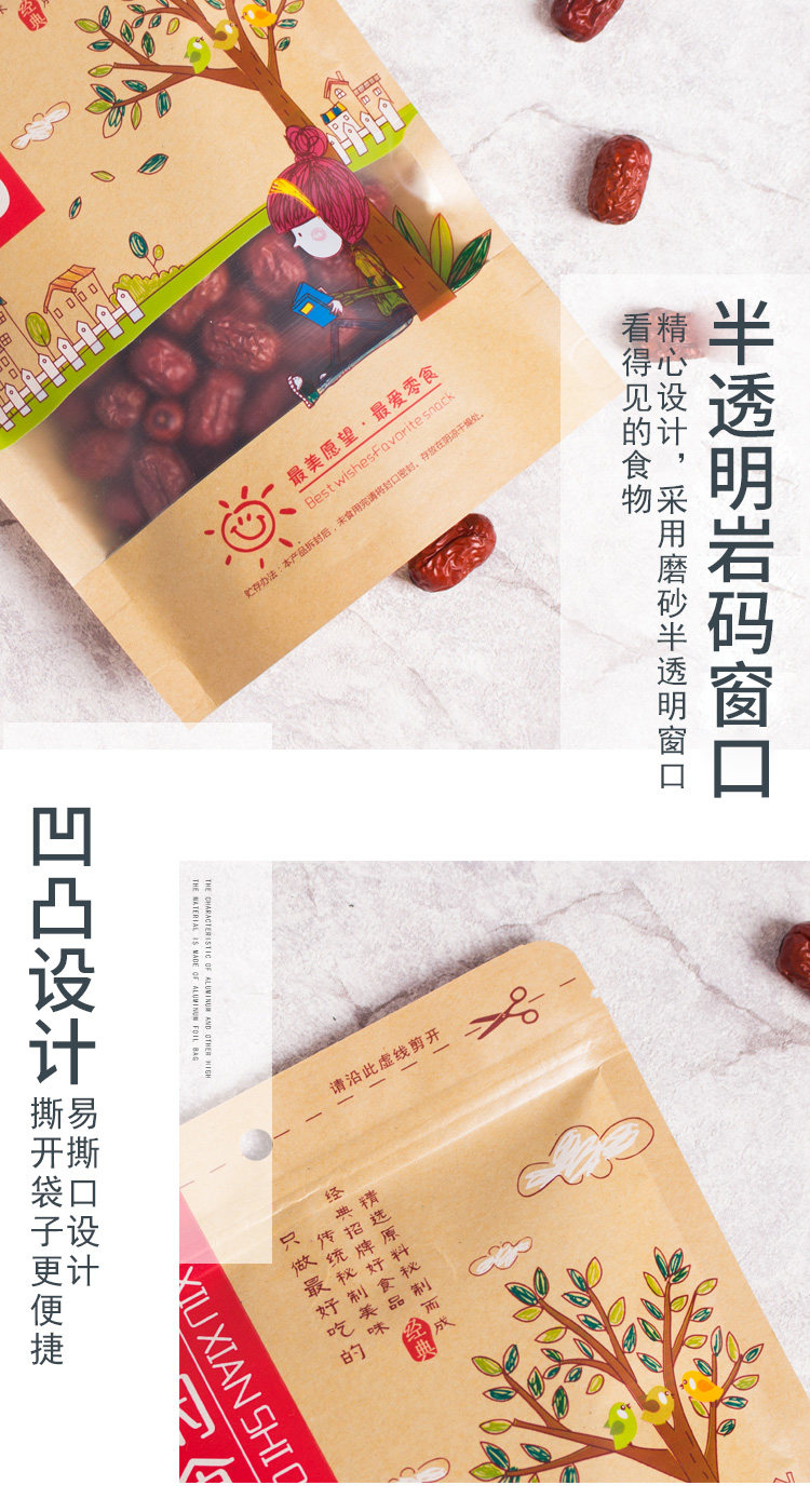 Сумка для упаковки сухой фрукты с печеночным пакетом для кожи для бумажных пакетов с закусками.