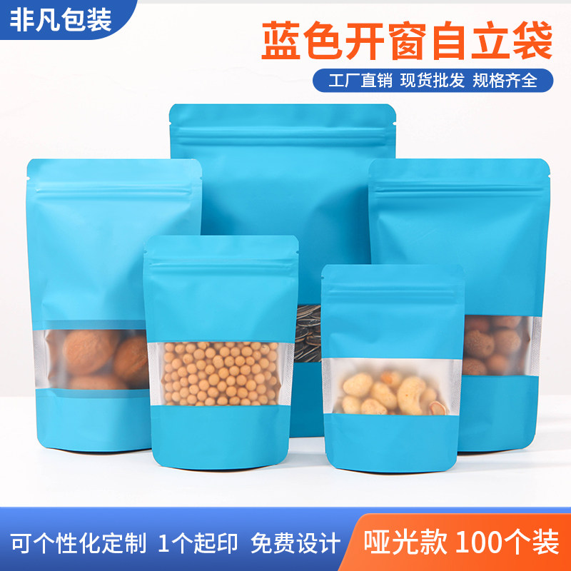 Красочный алюминиевый самостоятельный пакет с оконным проемом, пакет из алюминиевой фольги, синий самозапечатывающийся пакет, пакет для упаковки пищевых продуктов из соевого зерна
