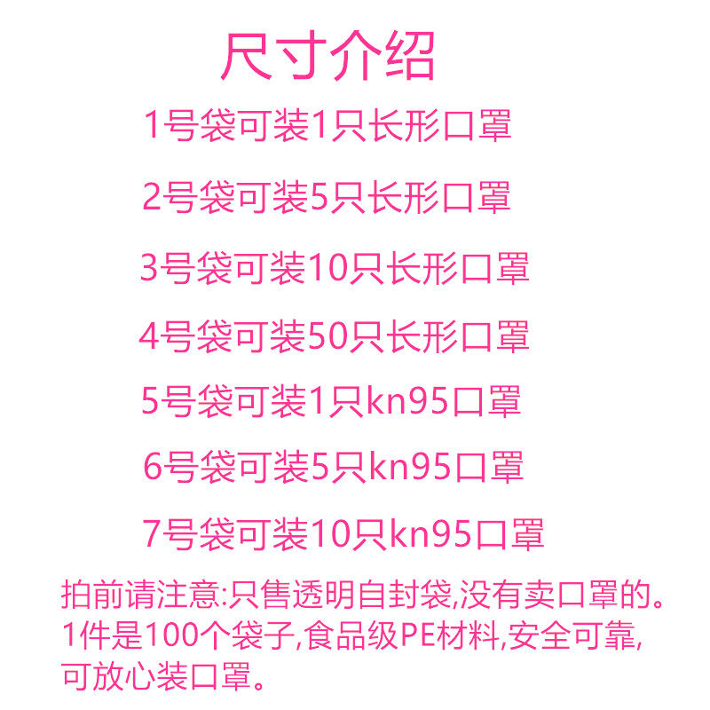 | Цвет: | 1 сумка 1 может быть установлен с 1 маской, Упаковка 2 мешка может быть установлена с 5 масками, Положить 10 масок 3 сумки 3, Пятьдесят масок могут быть установлены на 4 -й сумке, Поставьте 5 мешков, можно установить с маской 1 KN95, Поместите 6 мешков могут быть установлены с масками 5 KN95, Метка 105 кн 95 может быть установлен на 7 -й сумке |